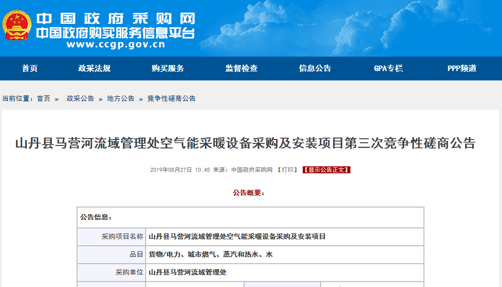 【磋商】山丹縣馬營河流域管理處空氣能采暖設(shè)備采購安裝項(xiàng)目,清潔取暖刻不容緩