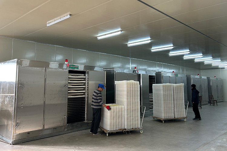 新鮮銀耳含水量高達75%左右,易受霉菌污染變質(zhì),故而需要及時進行烘干加工處理,所以我們在市場看到的多為干銀耳。鮮銀耳在烘干過程中,需要及時排濕,而且溫度又不宜過高,這樣才能夠讓銀耳烘干后顏色達到要求。以前,銀耳烘干有晾曬法和烘箱烘干法,但這兩種都有弊端,曬干的方法簡單實惠,但依賴于天氣變化,一般要晾曬2-3天才能曬干,耗時長,曬干的成品控制不穩(wěn)定,不適合市場大批量烘干。而烘箱烘干法,需要人工不斷的翻轉(zhuǎn)物料,導致熱量損耗大,銀耳外形容易受損,溫度控制不穩(wěn)定,成品差異大。用賽百諾空氣能熱泵銀耳烘干機進行銀耳烘干,烘干均勻,保證每一朵銀耳質(zhì)量保持一致,智能控制溫濕度,成品外觀白中微黃、透明、形狀好,品質(zhì)好,價值高。