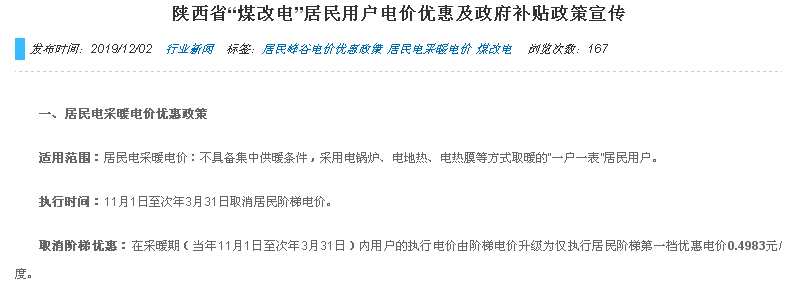 當然,考慮到陜西、山東、河北等不同地區都有不同的階梯電價,同時還有不同省市煤改電補貼政策優惠,以陜西省為例,煤改電階梯電價調整如下(僅供參考):