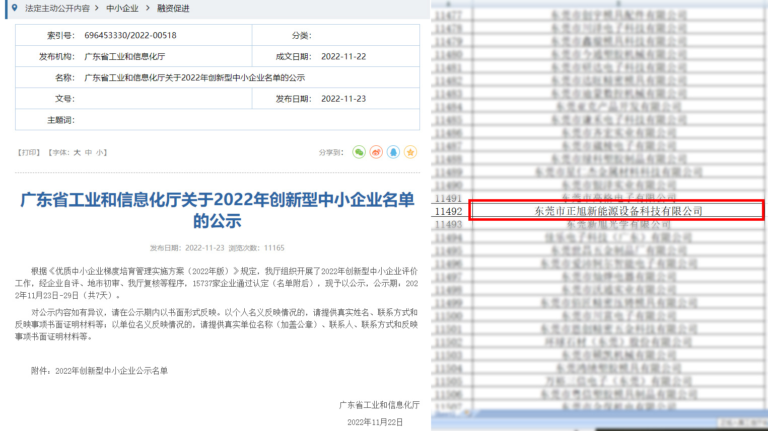 11月24日,廣東省工業(yè)和信息化廳官網(wǎng)發(fā)布了《關(guān)于2022年創(chuàng)新型中小企業(yè)名單的公示》,東莞市正旭新能源設(shè)備科技有限公司榮登其中。作為最早一批生產(chǎn)空氣源熱泵的制造業(yè)企業(yè),正旭多年來(lái)在熱泵行業(yè)的專注和創(chuàng)新有目共睹,此次入圍“2022創(chuàng)新型中小企業(yè)”公示名單,也算實(shí)至名歸、值得慶賀!
