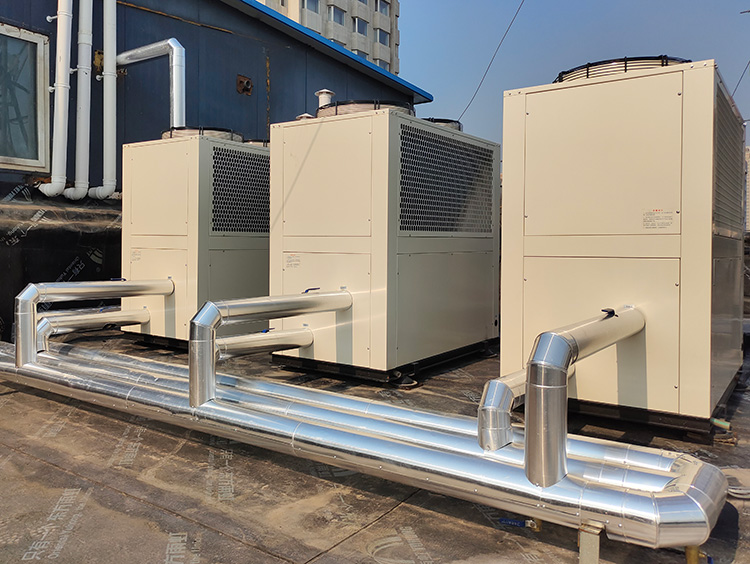 以正旭在山西太原某酒店熱水工程為例,該酒店擁有近100間客房,每天熱水需求在15噸左右,經多次線下考察與溝通,最終采用3臺正旭10匹超低溫熱泵熱水機組為酒店客房提供熱水。系統上線后,通過設置好水箱儲水量、供水及回水溫度,機組進入全智能運行狀態,自動補水、升溫與供水,為入駐酒店的顧客提供24小時即開即熱、暢快淋漓的熱水體驗。運行兩年多來,不僅經受住了太原冬季-20℃環境考驗,每年還為酒店節省幾萬元電費及人工開支,得到酒店管理方的積極好評!