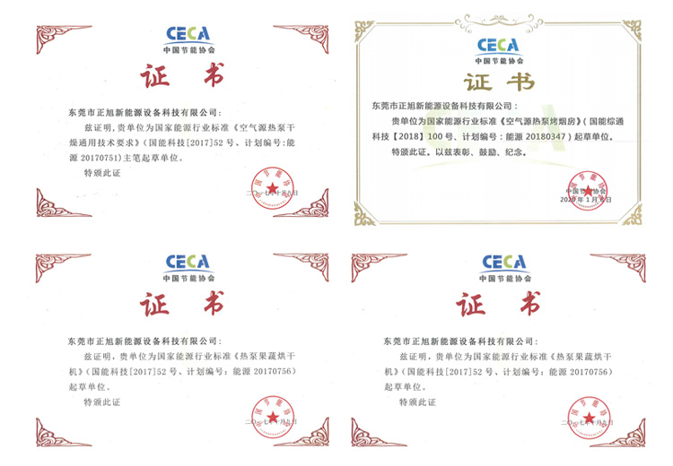憑借著卓越的技術(shù)優(yōu)勢,正旭不僅參與國家標(biāo)準(zhǔn)《金銀花空氣源熱泵干燥通用技術(shù)要求》起草制定,還是國家能源行業(yè)標(biāo)準(zhǔn)《空氣源熱泵干燥機(jī)組通用技術(shù)規(guī)范》主筆起草單位,參與《空氣源熱泵烤煙烤房》、《空氣源熱泵果蔬烘干機(jī)》、《空氣源熱泵糧食干燥機(jī)》、《空氣源熱泵烤煙房煙葉調(diào)制技術(shù)規(guī)程》、《空氣源熱泵中藥材烘干技術(shù)通則》、《空氣源熱泵污泥干化機(jī)》等十多項(xiàng)標(biāo)準(zhǔn)已頒布實(shí)施,擁有多項(xiàng)重量級發(fā)明專利,連年榮獲《中國熱泵行業(yè)十大優(yōu)秀工農(nóng)業(yè)烘干品牌》稱號,并進(jìn)入全國多省市地區(qū)農(nóng)機(jī)購置補(bǔ)貼目錄。正旭積極參與鄉(xiāng)村振興,提升農(nóng)產(chǎn)品烘干技術(shù),共同助力碳達(dá)峰、碳中和,實(shí)現(xiàn)“雙碳”目標(biāo)!