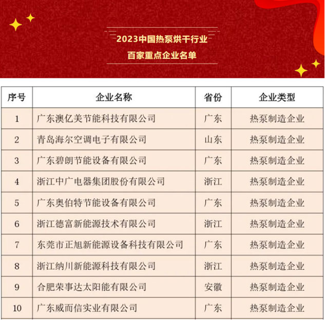 會上,由中國節(jié)能協(xié)會熱泵專業(yè)委員會支持、《熱泵》雜志承辦“2023中國熱泵烘干行業(yè)百家重點(diǎn)企業(yè)推選活動”,來自權(quán)威科研院所、知名院校、檢測認(rèn)證機(jī)構(gòu)、標(biāo)準(zhǔn)制定組織、行業(yè)協(xié)會等部門的專家組成評審組評審,對外發(fā)布了《2023中國熱泵烘干行業(yè)百家重點(diǎn)企業(yè)》榜單。60家熱泵制造廠家、23家烘干系統(tǒng)集成商、17家配件配套企業(yè)上榜,正旭空氣能榜上有名。《2023中國熱泵烘干行業(yè)百家重點(diǎn)企業(yè)》榜單的發(fā)布,將為廣大烘干品牌商與用戶之間搭建溝通橋梁,塑造烘干產(chǎn)業(yè)企業(yè)新形象,構(gòu)建熱泵烘干品牌新秩序。