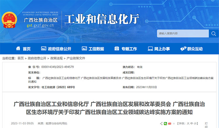 近日,廣西自治區發布《廣西壯族自治區工業領域碳達峰實施方案》(以下簡稱“方案”), 以實施重點行業達峰行動為抓手,加快廣西制造業綠色低碳轉型和高質量發展,推進地區資源能源高效利用,著力構建綠色制造體系,構建以高效、循環、低碳為特征的現代綠色工業體系。