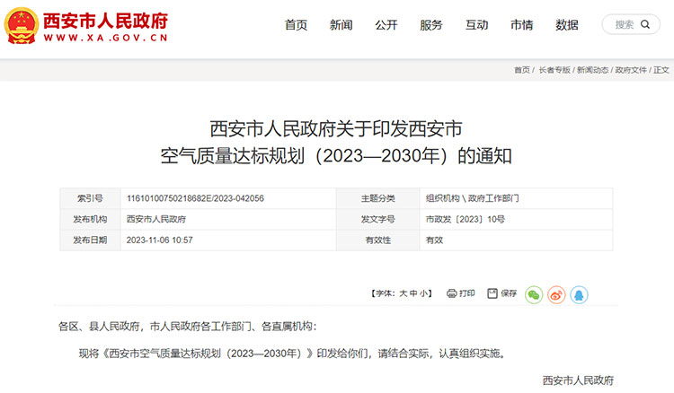 為推動西安市環(huán)境空氣質(zhì)量逐步改善,促進(jìn)全市經(jīng)濟(jì)、社會和環(huán)境協(xié)調(diào)發(fā)展,西安市于近日發(fā)布《西安市空氣質(zhì)量達(dá)標(biāo)規(guī)劃(2023—2030年)》(以下簡稱“規(guī)劃”), 規(guī)劃以實現(xiàn)空氣質(zhì)量達(dá)標(biāo)以及保護(hù)人體健康為目標(biāo),深入推進(jìn)西安市PM2.5和O3污染協(xié)同控制,逐步實現(xiàn)空氣質(zhì)量全面達(dá)標(biāo)。